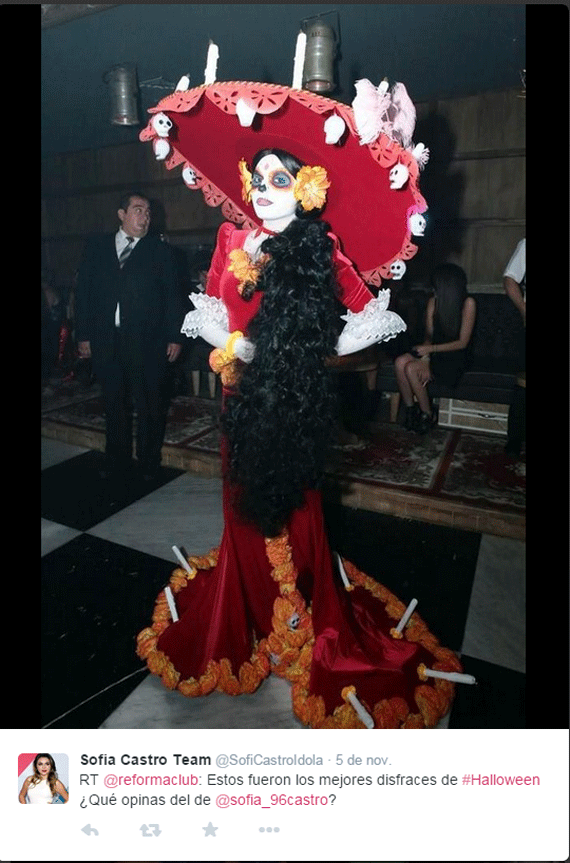 La imagen de Sofía disfrazada causó cierto debate en sus cuentas de Twitter e Instagram. Entre quienes defendieron a “La Catrina” hubo quien llamó “indios” a los críticos. Otra escribió: “No seas naca, ella no tiene la culpa de la vida que gracias a Dios le tocó vivir. Si ustedes son pobres y les va mal, qué pena, ella es hermosa, luchona y excelente mujer.”