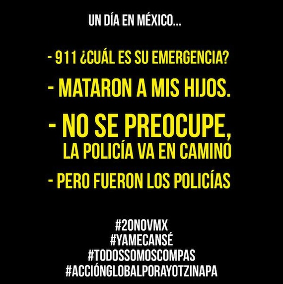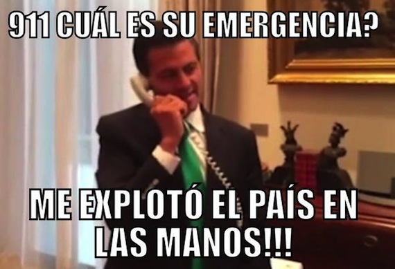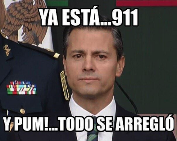 Ciudad de México, 27 noviembre,Los usuarios de las redes sociales reaccionaron con memes ante la propuesta del Presidente Enrique Peña Nieto sobre crear un número único para emergencias en México, el cual podría ser el 911 por ser el más reconocido a nivel mundial. Esta tarde, acompañado por los 31 gobernadores y el Jefe de Gobierno del Distrito Federal, Peña Nieto planteó, junto a otras nueve medidas, acelerar la creación de un teléfono único de emergencias para pedir auxilio, además propuso estudiar la posibilidad de que este número sea el 911. En el anuncio realizado en Palacio Nacional se propone también que el Gobierno federal tenga la facultad para “disolver” un Ayuntamiento cuando existan las pruebas necesarias de que sus autoridades están coludidas con el crimen organizado; también se habló de desaparecer las policías municipales de todo el país para sustituirlas por elementos estatales. El mensaje del Presidente causó que en Twitter etiquetas como #PorUnMéxicoEnPaz, #EmergenciasMexicanas911, Unidad y Desarrollo, Paz con Justicia y Después de Iguala, las cuales Peña Nieto mencionó en su discurso, se coloquen dentro de los trending topics de México. En la mayoría de los mensajes que acompañan estos tópicos predomina un tono de burla e ironía. Incluso en algunos se contrastó el anuncio con el hallazgo de 11 cuerpos en Chilapa, Guerrero, hecho que ha motivado que el nombre del municipio también se posicione como uno de los temas más mencionados en la red.